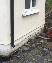 4 Helical Piles were used to correct subsidence. The building was lifted into the original position using underpinning brackets. This uplifting teachnology unique to Screwpile Ireland.