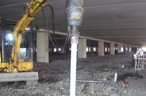 Rapid Construction of T2 Precast Car Park in Dublin Airport required construction of the ground floor slab after the main structure was complete. A grid of helical piles 4 - 6m deep was placed under the slab where there was a concern about the bearing capacity of filled ground. 195 piles were placed in 6 days including 2 static tests.